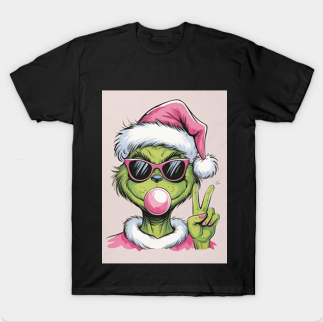 We use Newest DTG and Vinyl Technology to print Bubble Gum Pink Grinch T-Shirt.