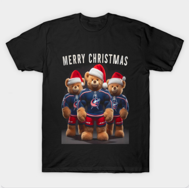 We use Newest DTG and Vinyl Technology to print Columbus Blue Jackets Xmas T-Shirt.