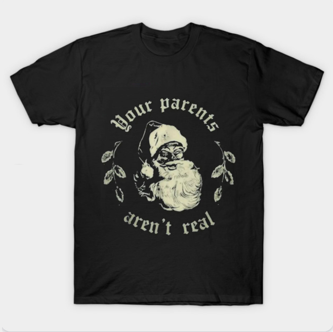 Buy Funny Dark Christmas T Shirt Your Parents Aren’t Real Gift Vintage Santa Sarcastic Holiday Graphic Tee