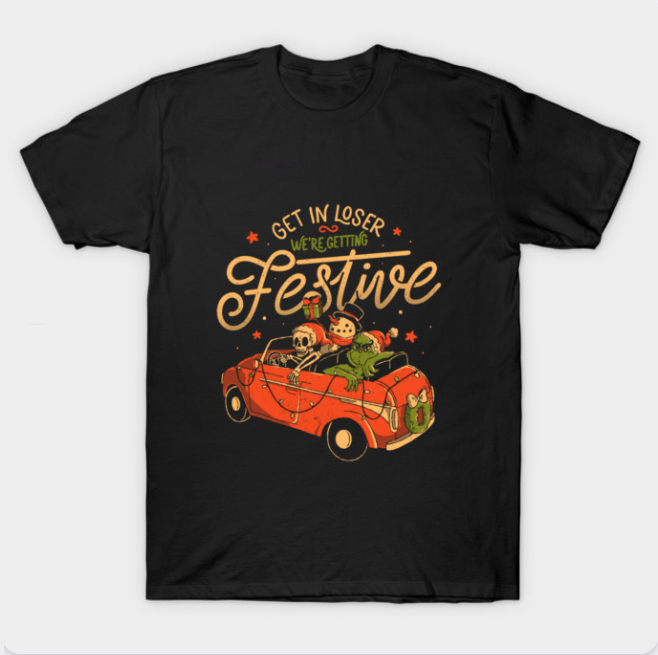 About Get in Loser Were Getting Festive – Funny Dark Christmas Skull Grinch Gift T-Shirt