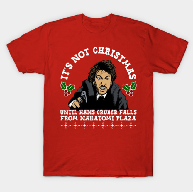 We use Newest DTG and Vinyl Technology to print Hans Gruber Christmas T-Shirt.